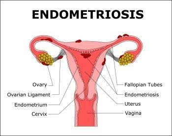 Endometriosis is a problem affecting a woman's uterus—the place where a baby grows when a woman is pregnant. Endometriosis is when the kind of tissue that normally lines the uterus grows somewhere else. It can grow on the ovaries, behind the uterus, on the bowels, or on the bladder. Rarely, it grows in other parts of the body.
